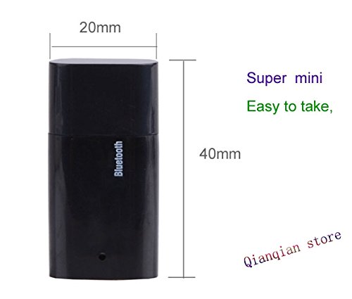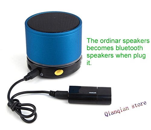 -. Binding : Electronics -. Brand : Qianqian -. EAN : 0669013557873 -. Feature : Output: 3.5mm Audio interface / Distance: 5-10 meters / Let ordinary speakers instantly become wireless Bluetooth stereo audio music speakers. / Make music in the audio equipment play by wireless. / Can be paired to any bluetooth enabled devices, such as mobile phone, laptops, speaker and Bluetooth audio transmitter. -. Label : Qianqian -. Manufacturer : Qianqian -. MPN : SV000130 -. PackageQuantity : 1 -. PartNumber : SV000130 -. ProductGroup : PC Accessory -. ProductTypeName : NETWORKING_DEVICE -. Publisher : Qianqian -. Studio : Qianqian -. Title : New Hot Wireless Receiver Dongle Bluetooth USB Adapter 3.5mm Stereo Music Receiver for Speakers Black -. UPC : 669013557873