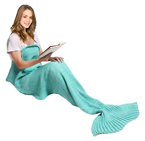 KingMys Mermaid Tail Crochet Knitting, Best Birthday Christmas Gift, Handmade Living Room Sleeping Blanket, Adult, Green