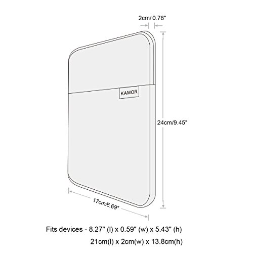 • Thickness: 0.5cm; Product dimensions - 9.45 (l) x 0.78 (w) x 6.69 (h) / 24cm(l) x 2cm(w) x 17cm(h); Fits devices - 8.27 (l) x 0.59 (w) x 5.43 (h) / 21cm (l) x 2cm (w) x 13.8cm (h)