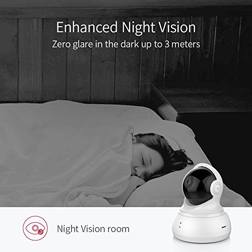 - 1080p High-definition, 112° wide-angle advanced glass lens combined with 345° horizontal & 115° vertical rotation range create a complete 360° coverage. Advanced night vision with 8 built-in 940nm infrared LED beads extend the viewing distance to 3 meters in pitch dark with no light pollution, so your baby or pet will not be disturbed by LED glare.