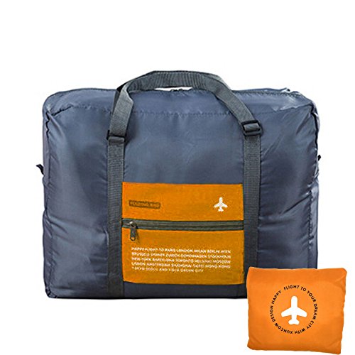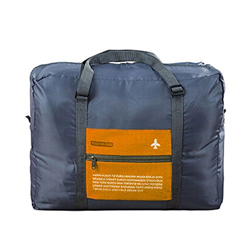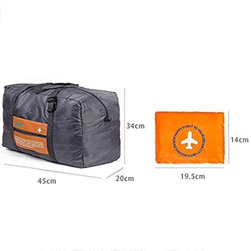 Feature: SIZE: 17.7in * 7.8in * 13.4in(LxWxH) folded size: 7.7in * 5.5in When you unfold the bag it becomes a very small pocket and easy to carry or store.After you open the duffel you can use the pouch on the front for anything you want to carry along as a cell phone, makeup, credit cards, money, etc. MATERIAL:Travel duffel is made with high quality Waterproof and tear resistant Nylon material Zipper closure,reinforced handles and adjustable strap. high quality and light weight. TRAVEL:It is ideal for travel, camping, hiking or go to the beach.Waterproof Foldable Super Lightweight Large Capacity Storage Luggage Bag If you are traveling and plan on purchasing gifts or clothes this is perfect to get everything home in APPLICATION:One special feature on this bag is the loop that helps attach it to the rolling luggageits, water resistant and it is large with a big flat bottom for sitting well on the ground, very stylish with the airplane, and two handles with 10 inch drop that can be carried anyway you want, adjustable buckles and slip onto roller travel luggage with the sleeve of the zippered pouch. We believe this bag can be what you are looking for if you need one travel bag -- it make it possible for us to carry-on a variety of miscellaneous items . You will like that it is very lightweight and folds easily for storage when not needed. And you will like the exterior pocket for storing things you need to get to quickly (like itinerary, etc.).Very useful and convenient. How To Fold it Back Into The Pouch: 1) Lay it on a flat surface, pouch side down and zipped. 2) Tuck in all four sides until you have an approximate rectangle. 3) Fold top, bottom, two sides in until you have it as the same size as the pouch. 4) Pull the pouch flaps over the folded bag and zip. 0