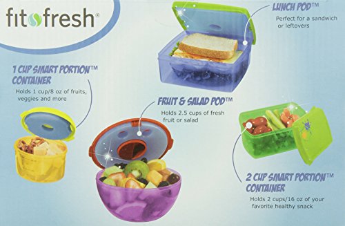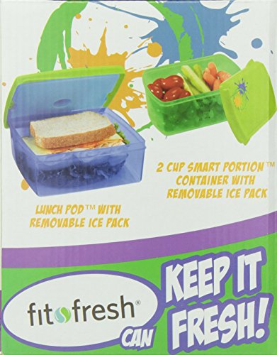 Fit & Fresh Kids' Healthy Lunch Kit, 13-Piece Reusable Portion Control Container Set with Removable Ice Packs, BPA-Free, Freezer/Microwave/Dishwasher Safe