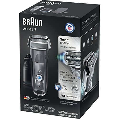 Braun Series 7 7865cc Wet & Dry Electric Shaver for Men with Clean & Charge System, Premium Grey Cordless Razor, Razors, Shavers, Pop up Trimmer, Travel Case