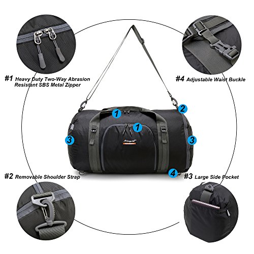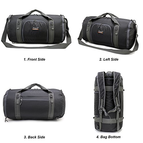 -. Feature : Material---Water Resistant and Anti-tear Nylon High Quality Material. / Dimension---24.8"(L)x13"(W)x13"(H); Fold Up Size: 9 x 9.8 inches; Weight is 1.65LB. / Multi-Purpose Durable Bag---High Quality SBS Zippers with pull string. 1 Comfortable Handle for easy carrying and 1 Detachable & Adjustable Shoulder Strap for comfort. 1 Backpack Strap Hidden in the back zippered pocket so that you can hide it when you don't use this bag as backpack. Besides, easy carry either by handles as a tote bag or removable shoulder strap as a shoulder bag or a cross body bag. / Structure---1 large main compartment, 2 large side elastic pockets, 2 external zippered pockets, 1 separate shoes compartment that also can be used as a dirty laundry compartment. This bag has enough space to carry what you need for the gym or short trips and the water resistant material is high quality. Besides when you don't use it, you can fold it and easy to storage. / Versatile---Good size for a short weekender trip, also is a perfect for those traveling within city limits. Besides, you can take it to the gym, the office, or the terminal, weeks hunting and so on.
