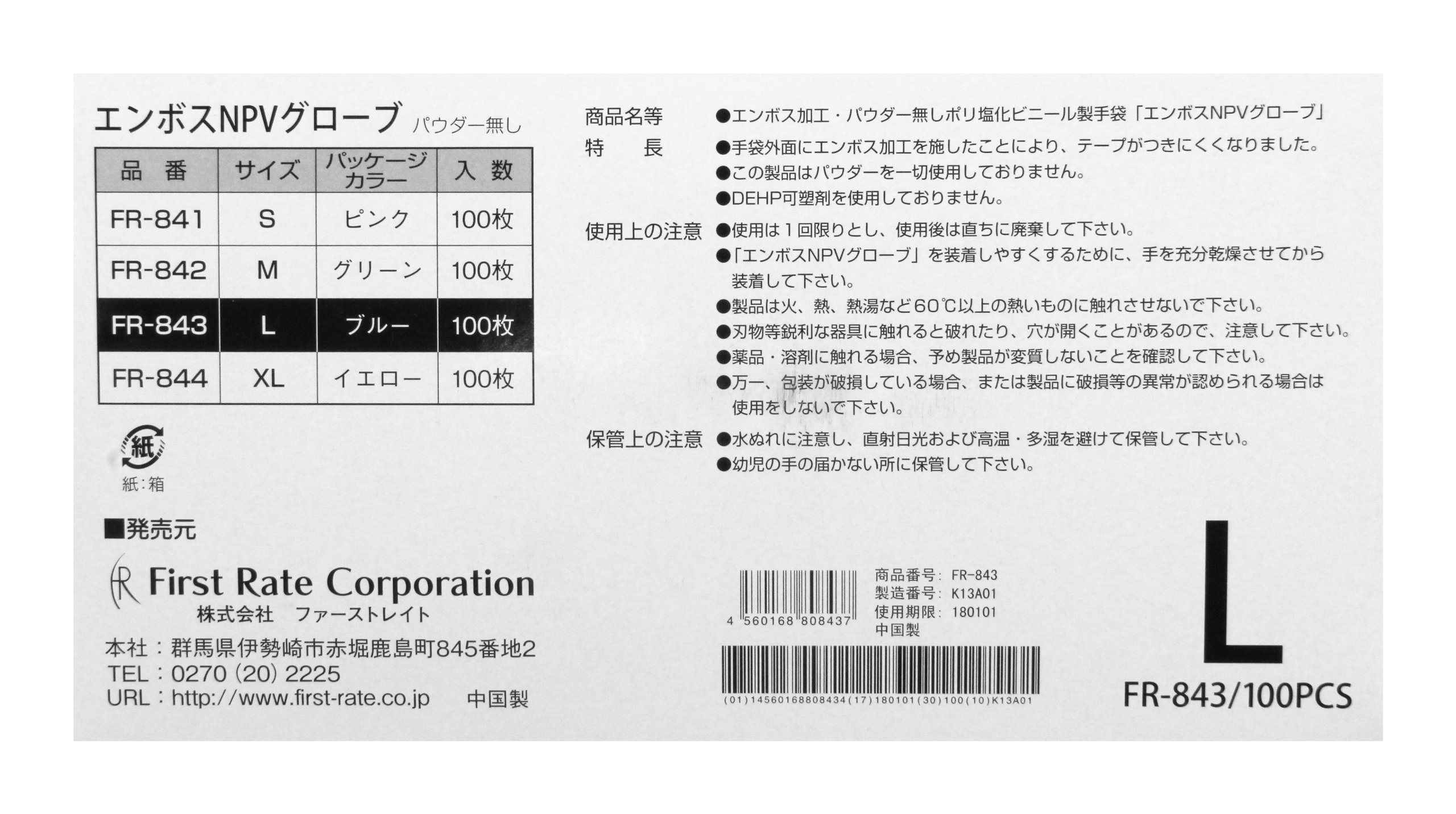 ● Size: L ● Quantity: 100 sheets ● Material: PVC ● Embossed powder free high elastic plastic gloves.