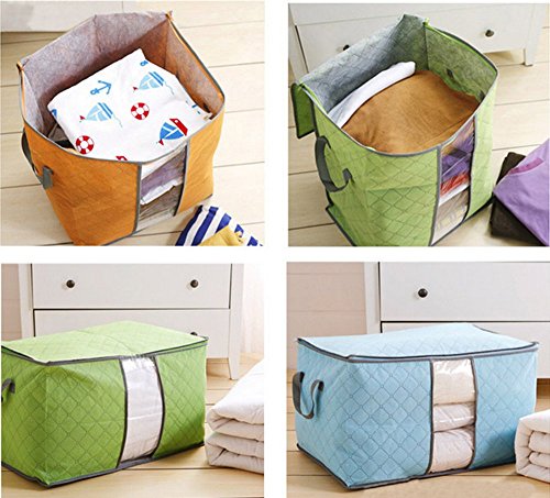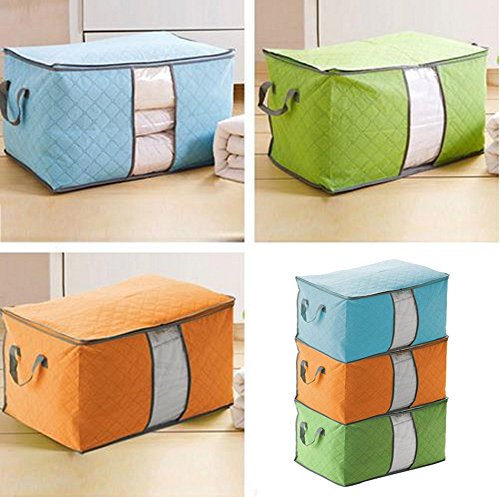 Yosoo 3-Piece Large Bamboo Charcoal Clothes Quilt Pillow Blanket Zip Foldable Storage Bag Box Organizers Container Box Assorted Colors