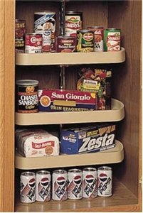 -. Feature : 3 D-Shaped Set Almond / 3 Shelf Unit / 38" to 46" Inside Cabinet Height / Independently Rotating