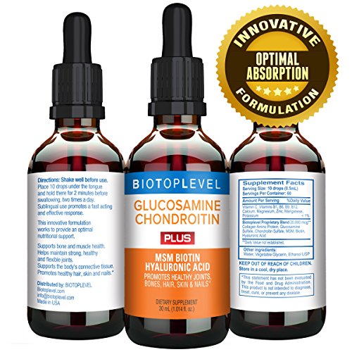 ✅ FIVE OF THE MOST EFFECTIVE AND ESSENTIALLY SUBSTANCES (Glucosamine, Chondroitin, MSM, Biotin and Hyaluronic Acid) are included in our product in an easily absorbed liquid form for supporting the good health of joints and bones; enhance the natural skin function, and support the strength and growth of hair and nails. Our formulation is complemented with essential vitamins (Vitamin C, B1, B6, B9, B12) to provide and optimal nutrition and support the normal functions of the body.