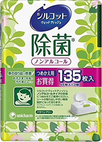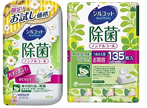 "Silkot wet weather safe disinfecting bacteria refilling 45 packs 3 packs" is a profit of "Silkot wet tissue disinfecting body disinfecting body 45 sheets" blended with plant-derived sterilizing ingredients, which has no alcohol taste and alcohol smell