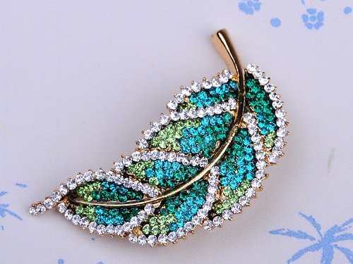 -. Title : Alilang Golden Tone Elegant Fresh Green Tree Leaf Swarovski Crystal Rhinestone Pin Brooch