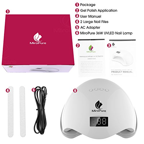 MiroPure 36W UV LED Nail Lamp with 4 Timer Setting and 2 Nail Files
