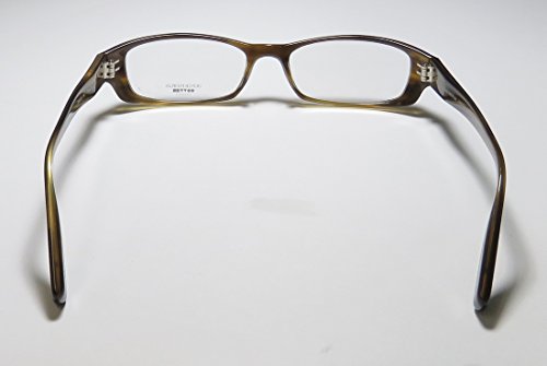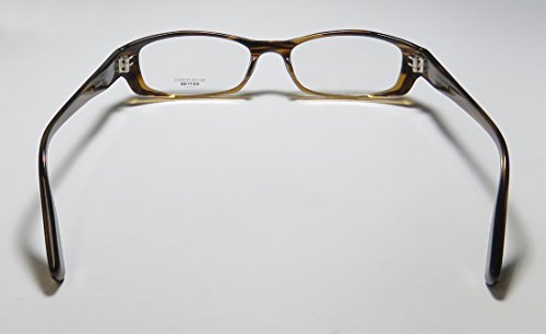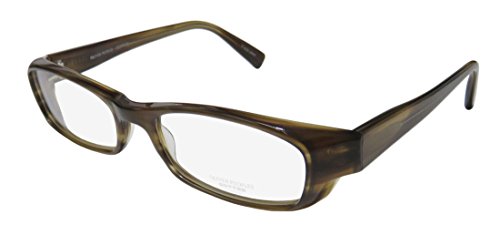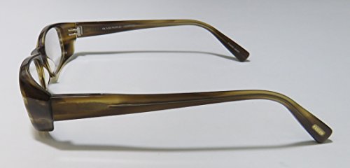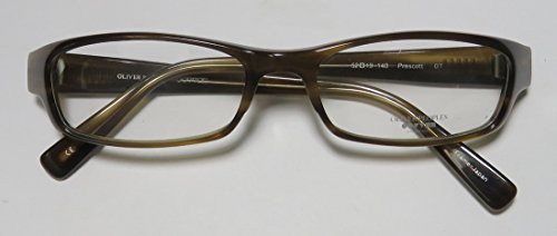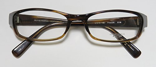 Brand: Oliver Peoples Style: Prescott Gender: womens Frame Type: full-rim Frame Material: plastic Case: eleganzo The frame is fully rx-able and can be fitted with prescription and/or tinted lenses at most optical stores. Please note that factory demo lenses have a logo stamped on them in ink. This frame provides comfortable fit and flatters a variety of face shapes. These eyeglasses are crafted from high quality, durable premium acetate plastic. Please keep in mind that original case is not included with this frame. However, we will include an Eleganzo hard case at no extra charge to keep your eyeglasses protected. The glasses are made in Japan. These eyeglasses retail for $420.00 at upscale stores that carry designer frames. Save your money and get them here! The pictures cannot fully reflect the beauty of this piece of designer eyewear. These eyeglasses look even more elegant in real life. 0 |