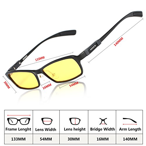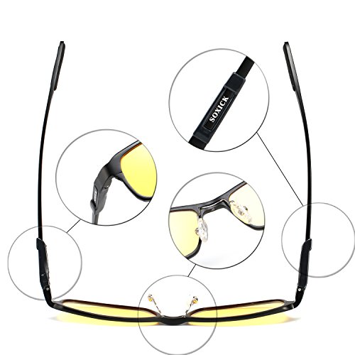 -. Feature : ★SOXICK POLARIZED YELLOW LENSES★ - Can reduce glare from the headlights of other vehicles, pavement, and other reflective surfaces by filtering light coming from different angles. These special lenses make colors and objects appear clearer, so you can see every detail of the open road. Polarized lens help restore true color. Keep vision vivid, eliminate reflected light and scattered light and protect eyes perfectly. / ★HOW TO TEST FOR POLARIZING GLASSES?★- 1--Put the glasses in front of LCD screen and look through the lens--2--Turn the glasses 45 degrees--3--You will notice the color has changed.The light coming through should have been blocked,this means the lenses are POLARIZED--4--NOTE: Only the yellow night vision lenses are regularly used at night. [-Note that some companies claim to sell polarized glasses, but in fact their glasses use regular non-polarized lenses-] / ★BEST LIGHT ENHANCING LENS TINT (Pale Yellow Lenses)★ - Enhance contrast in low to extremely low light conditions, haze, etc. Some of our customers say Knight Visor glasses combat eye fatigue, reduce drowsy driving at night and maintain your focus on the road. / ★APPLICABLE SCENARIO★ - Lightweight Alloy Design and HD Driving Glasses - Yellow Lens Glasses for Night Vision Lens Is Ideal for Usage By Motorcycle and Cycling , Driving, Running, Fishing,Racing, Skiing and Climbing, Trekking or Other Outdoor Activities Enthusiasts.[ Especially at Rainy day / Cloudy / Night ] / ★LIFETIME WARRANTY★ - German Military Quality Guarantee Patented Product. We do provide lifetime warranty . Please do not hesitate to contact us if this product does not meet your expectations.