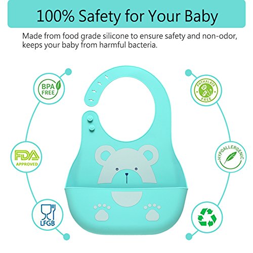 Studio : Volador Technology Co., Ltd Publisher : Volador Technology Co., Ltd Binding : Apparel Product Description Are you tired of clean the mess when feeding your kids during mealtime and snacks? Are you annoyed to clean stubborn stains on their clothing? That's why we designed these special waterproof silicone bibs with wide and deep pocket to catch food crumb. This silicone bibs set will make your parents life a bit easier. Why we choose silicone material? Safe for Babies - Adopting 100% food grade silicone, which is eco-friendly, BPA-free and phthalate-free. Our silicone bib set can withstand 120℃, you can disinfect these baby bibs with boiling water. Easy to Clean - The waterproof silicone bibs doesn't absorb water and other stains like cloth bibs. You can easily wipe it clean with soapy water, rinsed off under running water or use the dishwasher. Light Soft - The silicone bib only weighs 3.5oz. It's super soft so it won't hurt the delicate skin of your baby. Adjustable Size - 4 adjustable snaps allows your rapidly growing child to use it for a long time. Suitable for babies from 4 month to 4 years old. Foldable Portable - These soft teething bibs allows you easily roll up for compactly store, make it more convenient for travel or on the go. Package Contents 1 x Bear Pattern Silicone Bib 1 x Piggy Pattern Silicone Bib