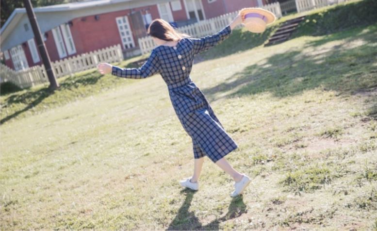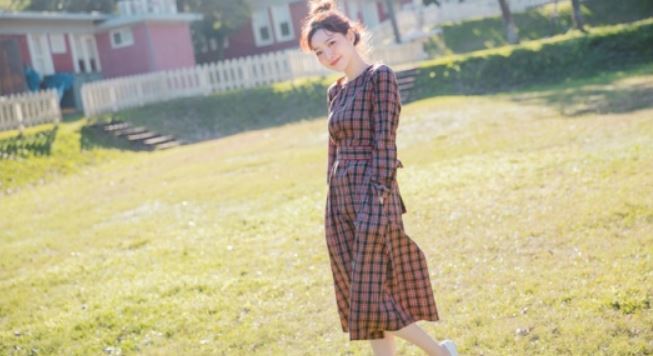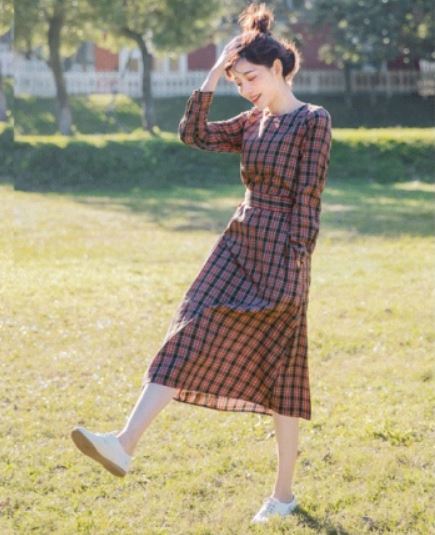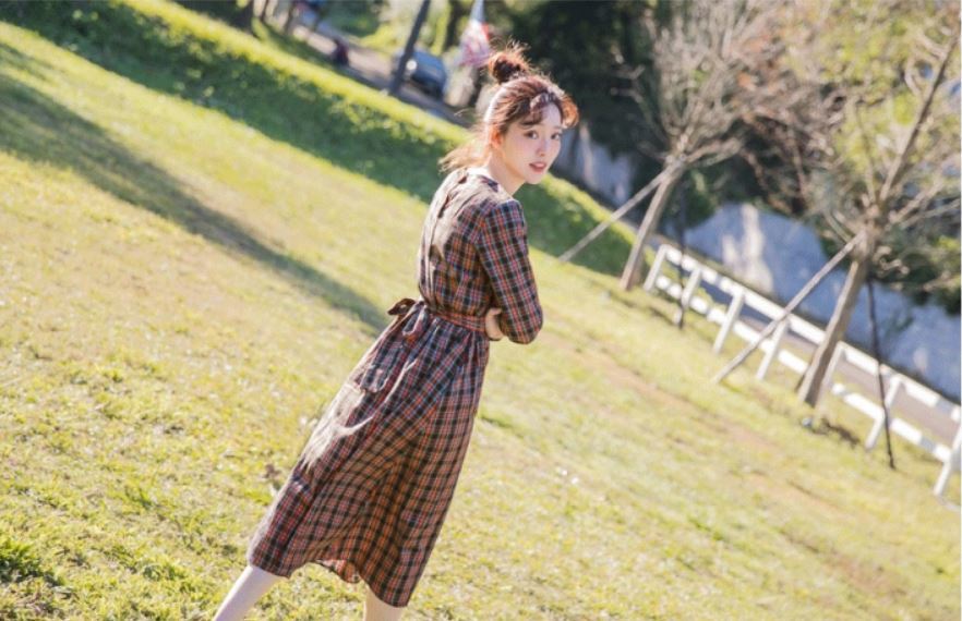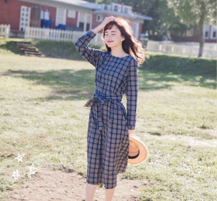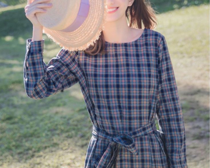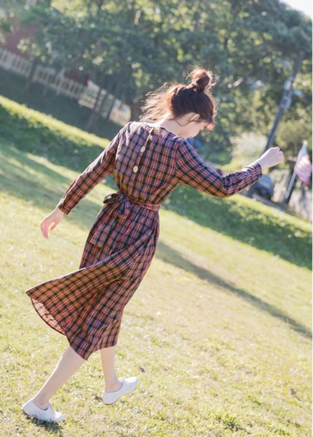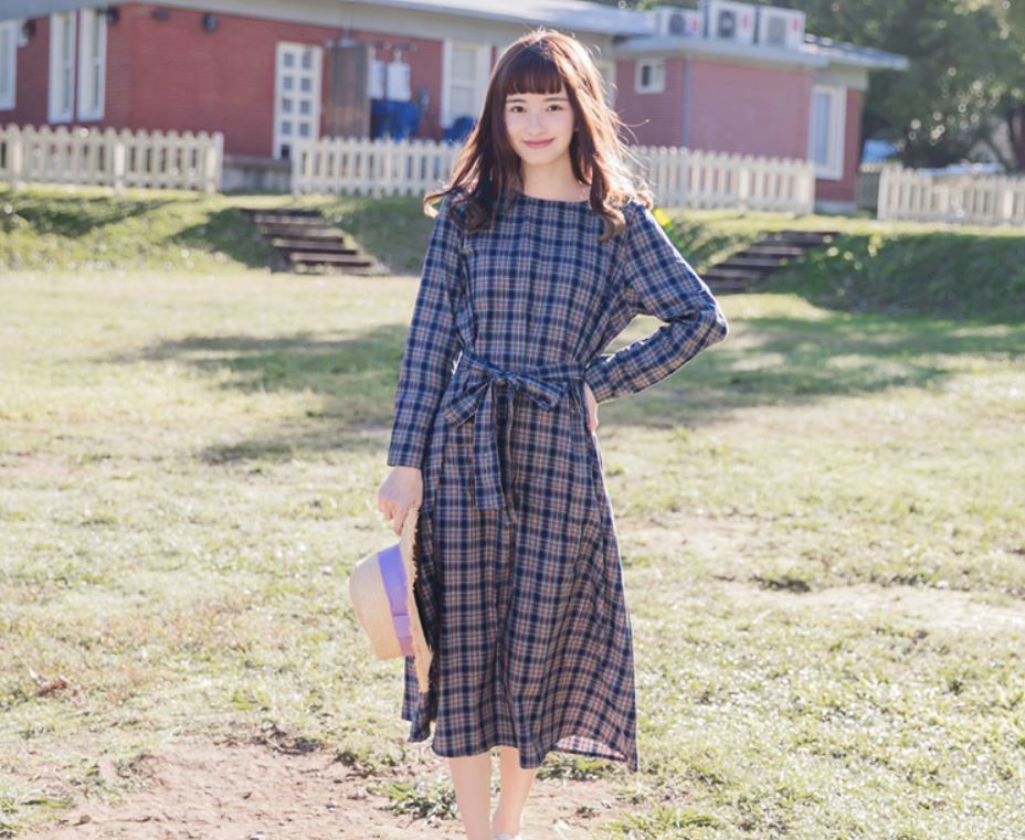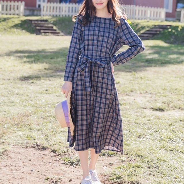 トレンドのチェック柄とウエストのリボンが女の子らしさ満点の1枚です。