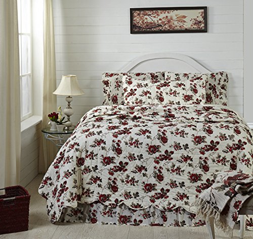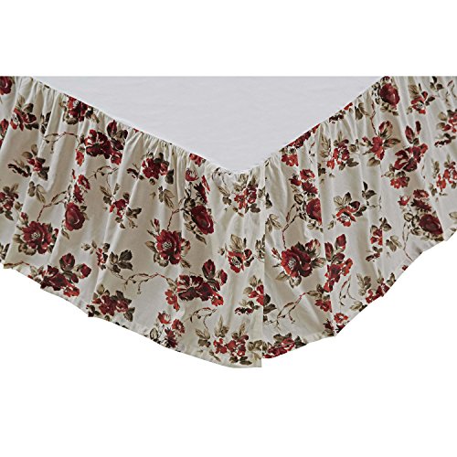Mariell Queen Cotton Red Green Floral Design Bed Skirt 60 x 80 x 16 inches