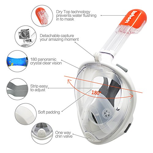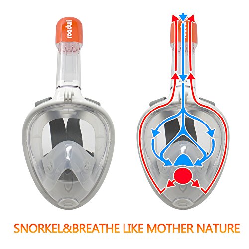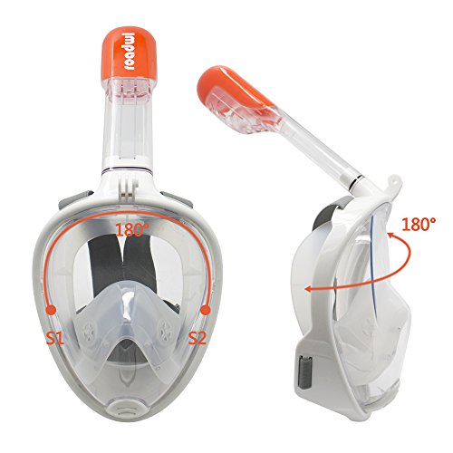 Roadwi 180 Panoramic Full Face Snorkel Mask with Anti-Fog Anti-Leak Technology(White/Gray, L/XL)