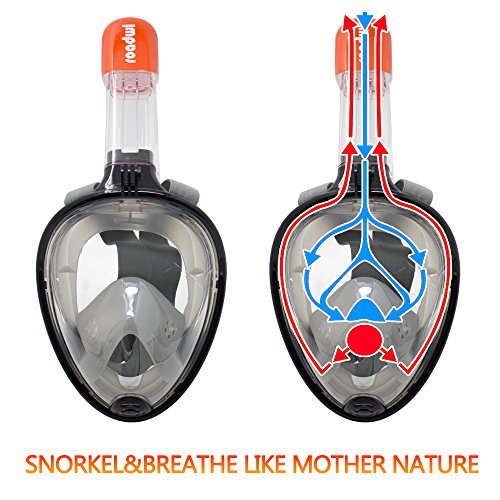 Roadwi 180 Panoramic view Full Face Snorkeling Mask with Gopro Mount & Gym Drawstring Bag,Anti-Fog and Anti-Leak Technology(Black/Gray ,L/XL)