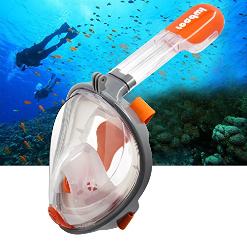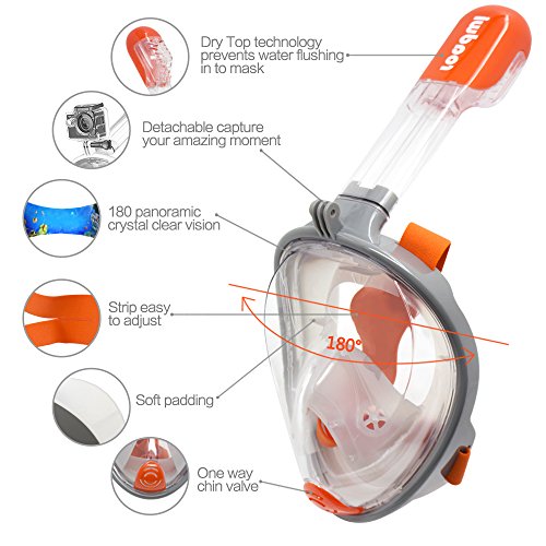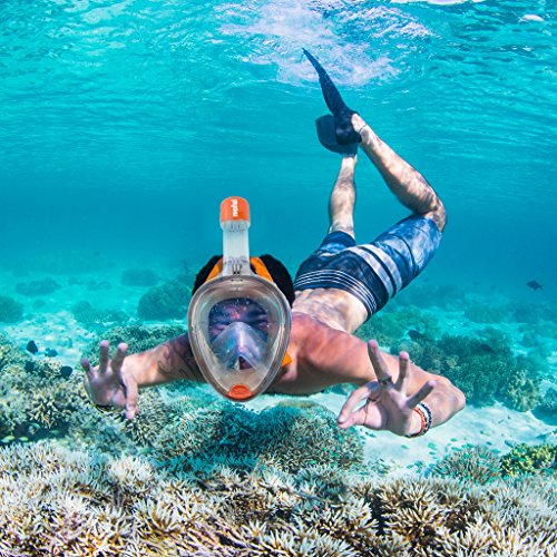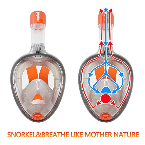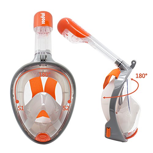 Roadwi 180 Panoramic Full Face Snorkel Mask with Anti-Fog Anti-Leak Technology(Gray/Orange, S/M)