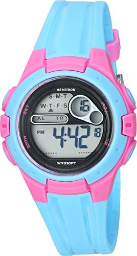 Armitron Sport Women's 45/7079LBL Pink Accented Digital Chronograph Light Blue Resin Strap Watch