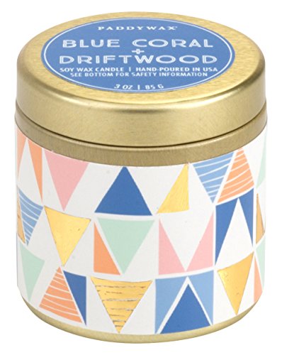 Paddywax Kaleidoscope Collection Scented Travel Tin Candle, 3-Ounce, Blue Coral & Driftwood