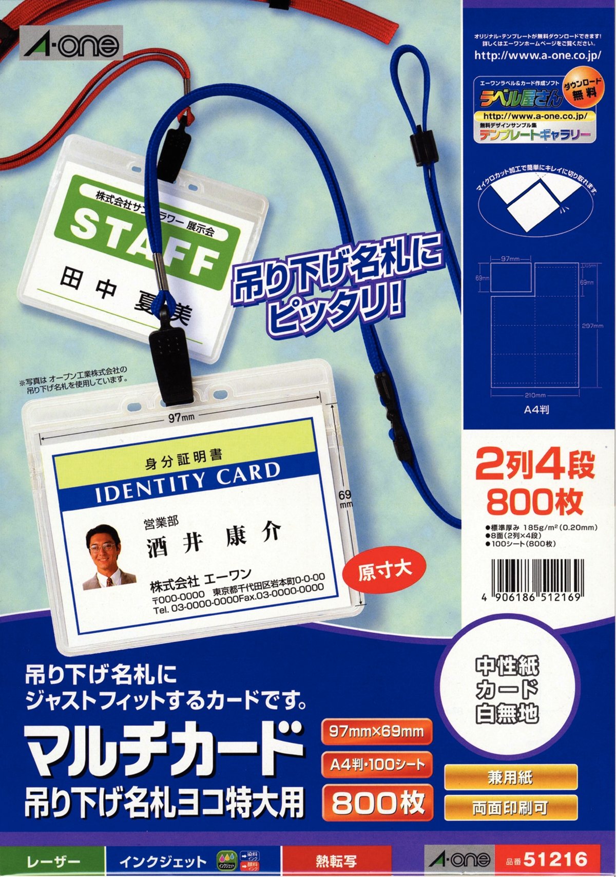 · It is a card for hanging name tags that can be printed with various printers.