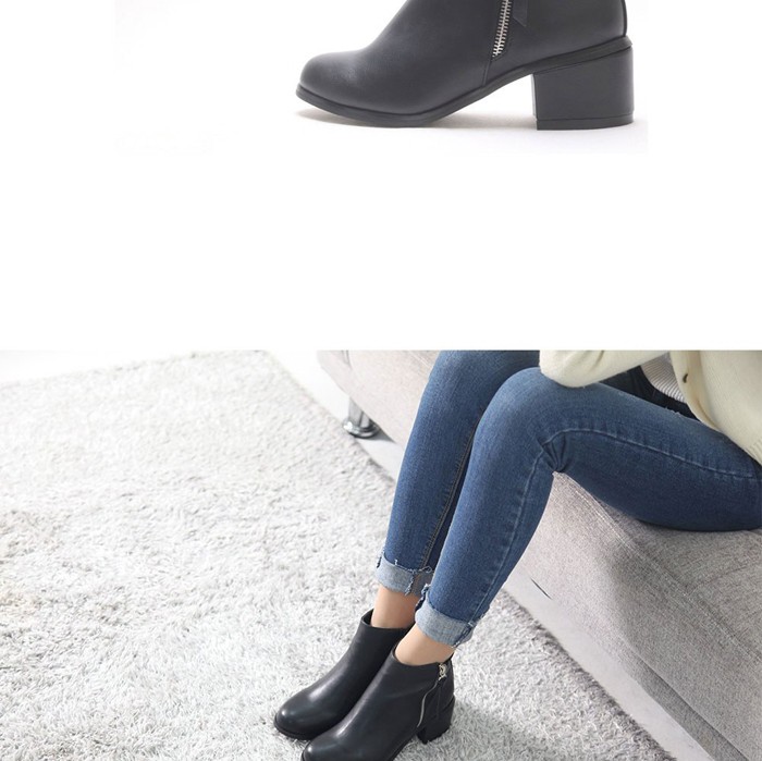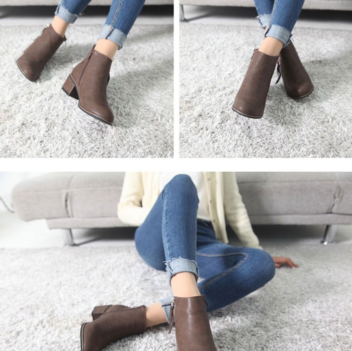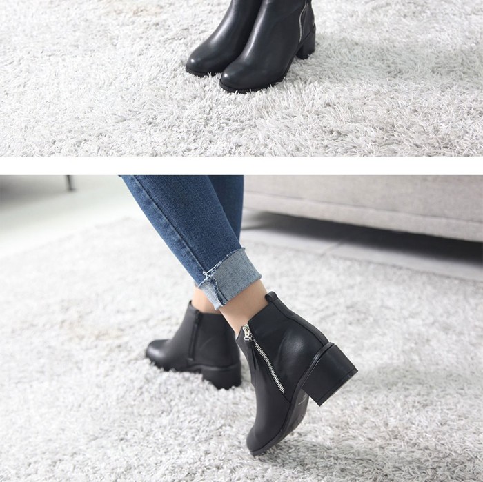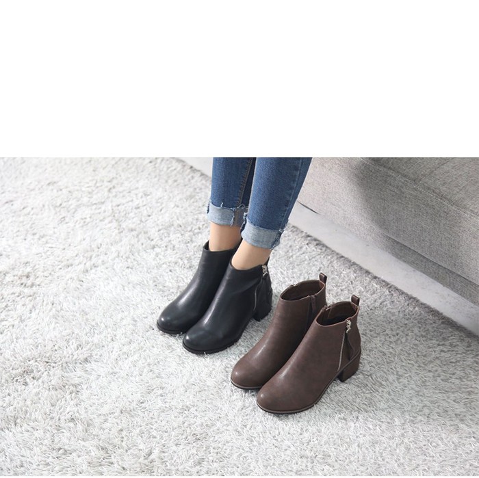 商品名:ショートブーツ レディース チャンキーヒール サイドジッパー 太ヒール 2017 秋冬 ファッション 靴 婦人靴