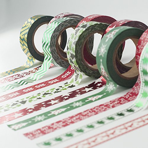 - DIMENSIONS: Single printed roll is 0.6 inches wide by 11 yards long. Total 10 rolls,10 different designs(Christmas tree, Christmas candy canes, Christmas elk, Snowflake, Little stars and other element on the tape).