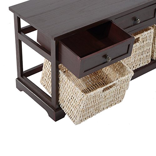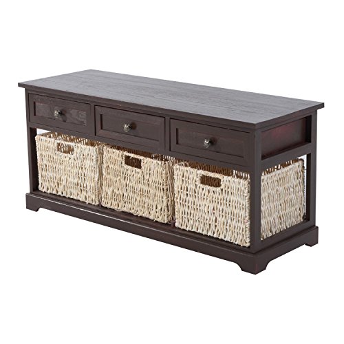 -. Brand : HOMCOM -. Feature : Classic wood storage bench combines traditional and natural looks in one / 3 drawers in an elegant style offer storage for household items / 3 baskets in a woven design are removable for additional space / Works great in any room of the house from hallways to bedrooms / Overall Dimensions: 39.25"L x 13.75"W x 18"H -. Label : Aosom Direct -. Manufacturer : Aosom Direct -. Model : 833-064WT-Parent -. ProductGroup : Furniture -. ProductTypeName : HOME_FURNITURE_AND_DECOR -. Publisher : Aosom Direct -. Studio : Aosom Direct -. Title : HOMCOM 3-Drawer 3-Basket Storage Bench