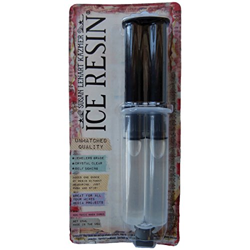 ICE Resin is Susan Lenart Kazmer's signature product. It is a jeweler's grade, non-toxic-when-cured, ultra clear, epoxy resin. ICE Resin is the preferred resin art medium for professional artists who sell their mixed-media jewelry and finished art work because it will not fade or yellow over time. Crafters who wish to create heritage jewelry are also pleased with the beautiful clarity ICE Resin makes it possible for them to achieve and preserve. ICE Resin 25 ml. Plunger Singles makes one ounce of ICE Resin without measuring. just push into your mixing cup and stir! The plunger will measure out the Resin and the Hardener in correct proportions for you. New twist-on/off cap! A quick and easy way to use our fabulous ICE Resin.Feature