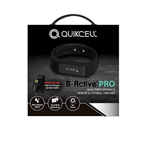 Quikcell Fitness Tracker for Android & Apple Phones - Retail Packaging - Black