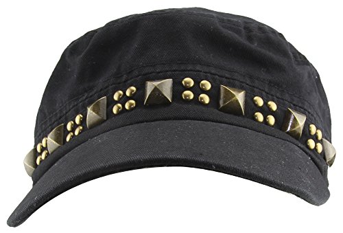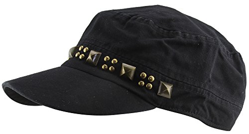MINAKOLIFE 100% Cotton Punk Rivet Flat Cap Hat Military Camp Sun Snapback Hat