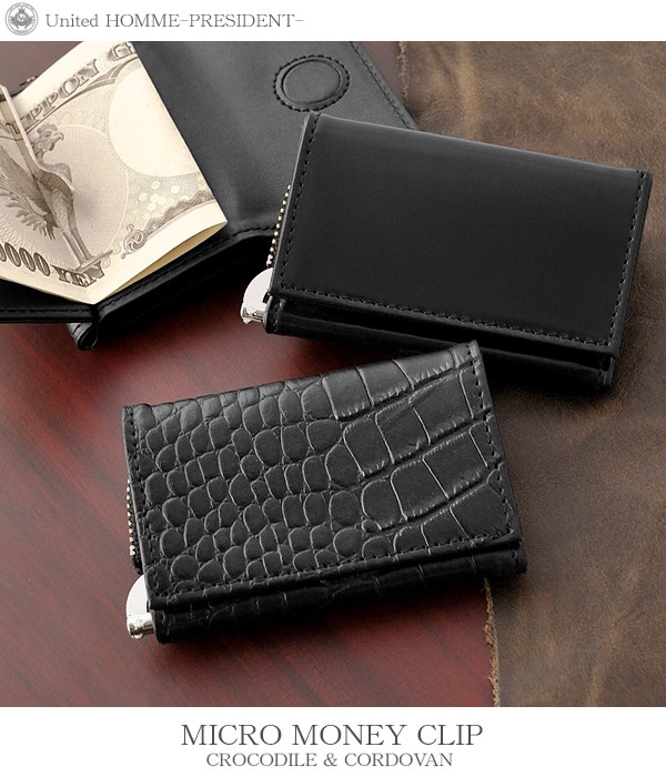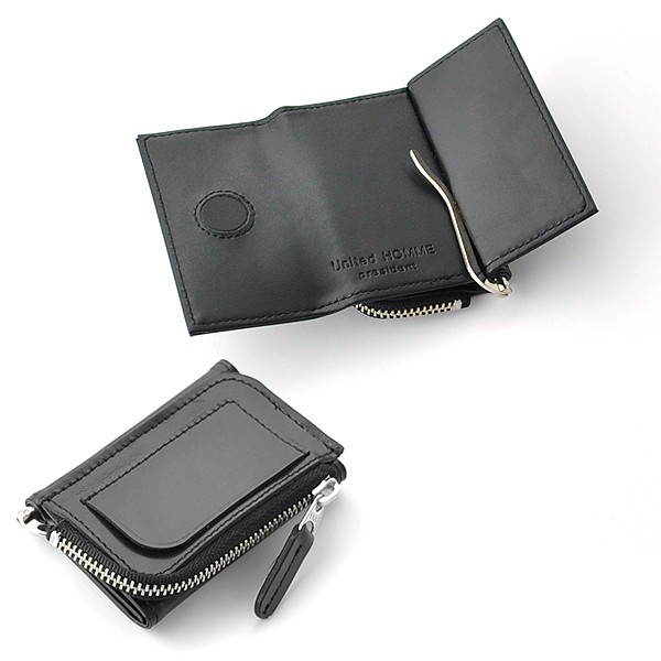 ユナイテッドオム プレジデント United HOMME President コードバン マネークリップ 小銭入れ UHP-585 ブラック  商品仕様:(約):9×6×2.5cm UHP-585/馬革 マネークリップ×1・ミニポケット×1・ジップポケット×1メンズマネークリップ×1・ミニポケット×1・ジップポケット×1