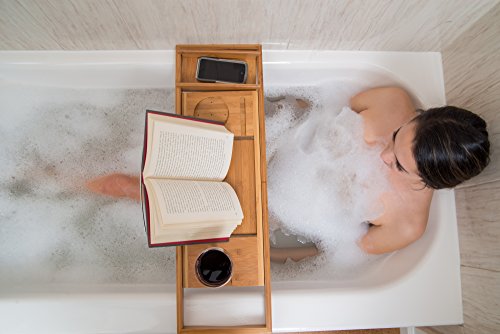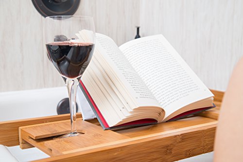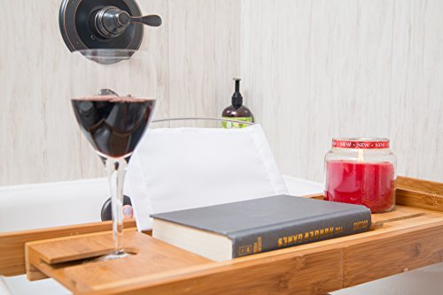 Bamboo Bath Tray Book Holder - Bathroom Bathtub Bath Caddy Organizer with Rubber Grips