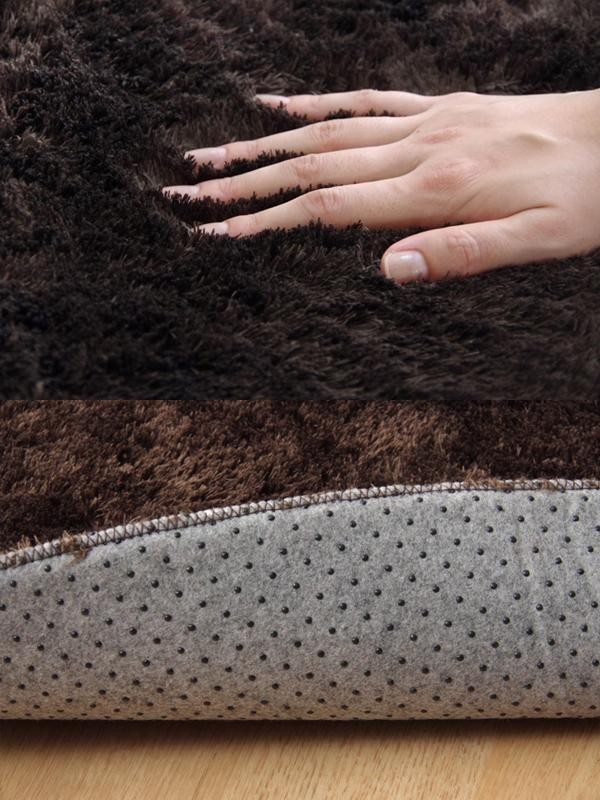 お部屋に合わせやすい高級感あふれるオーバーロック仕様のラグです。裏面には滑りにくい加工を施しているためフローリングでも安心してご使用いただけます。 |
