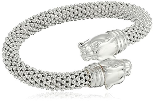 -. Title : Sterling Silver Rhodium Plated Panther Popcorn Bangle Bracelet