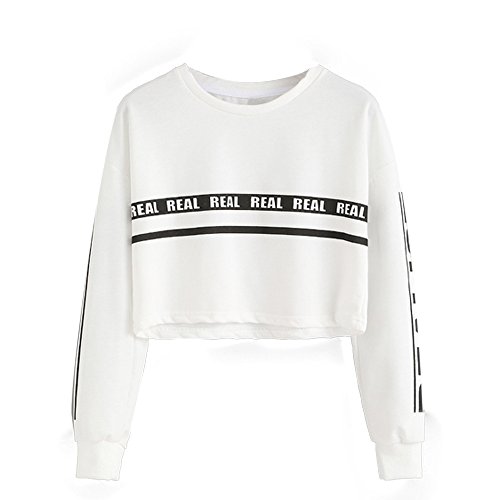 Rosennie Damen Kurz Leicht Sweatshirt Brief Drucken Mode Rundhals Langarmshirt Beilaufig Sport Outdoor Top Bluse