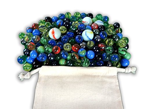 (Discount Learning Supplies)/Games/Dice Marble Games/DIRECT FROM USA/Bag of Marbles - 200 Marbles - 5 Shooters - Free Storage Pouch - Cats Eye and Opaque Swirl Asso...