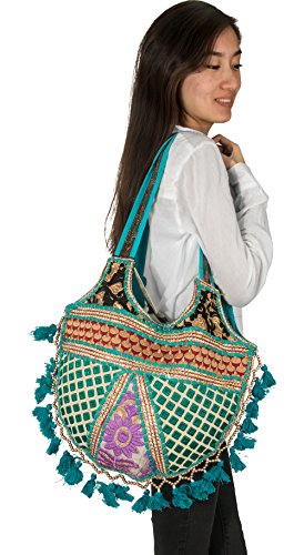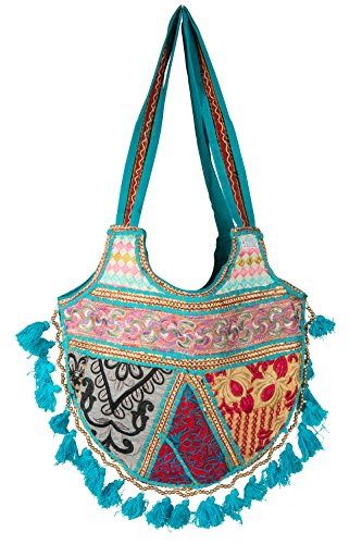 Bohemian Shoulder Tote Bag For Women - Spacious, roomy and functional. Tribal Ethnic Handmade Design by Tribe Azure Fair Trade Artisans - Due to nature of Handmade Design, expect slight variations in the patchwork colors