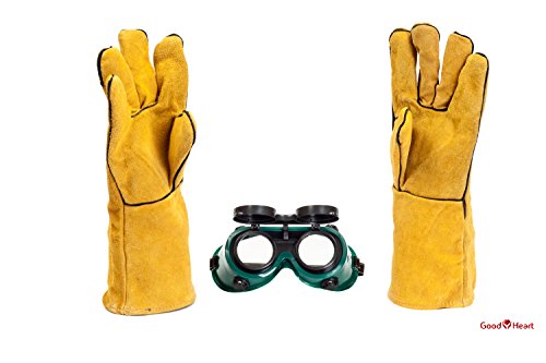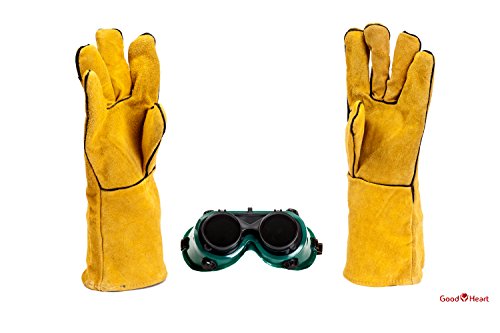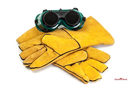 Cowhide Leather Welding Gloves With FREE Bonus Pair of Welding Goggles for Ultimate Set. Extreme Heat Resistant, Perfect For Tig Welders, Mig, and Other Industrial Work. Convenient Flip-Up Goggles