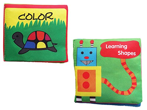 -. Title : WELLSKEY Set of 2 pcs Soft Book for Babies Fabric Activity Educational Toys for Baby Toddler Interactive Baby Shower Gifts Boy Girl (Colors & Shapes)