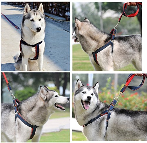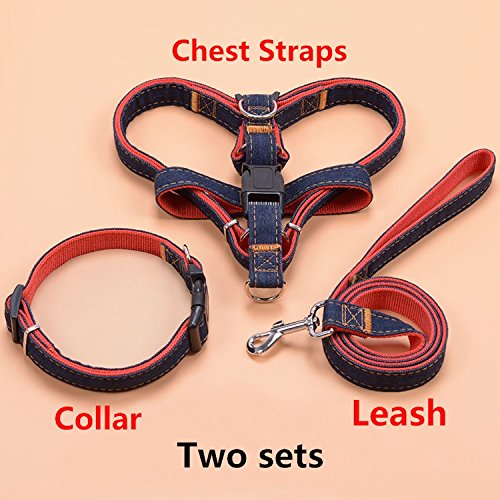 Dog Denim Leash Harness Set,Adjustable and Heavy Duty Durable for Training Walking Running,Dog Collar/Chest Straps for Pets