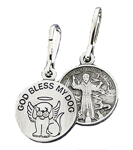 -. Feature : Finely engraved silver tone medallion / On flip ring for easy connection to dog collar / Sturdy and durable / St. Francis is patron saint of animals