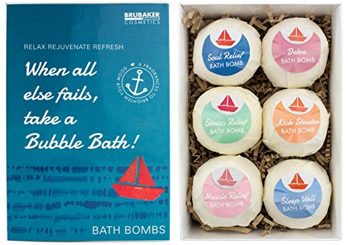 -. Title : BRUBAKER Bath Bombs Gift Set When all else fails, take a Bubble Bath - 6 Handmade Luxury Spa Bath Fizzies - All Natural Vegan, Organic Ingredients - Avocado Oiland Sesame Oil Moisturizes Dry Skin