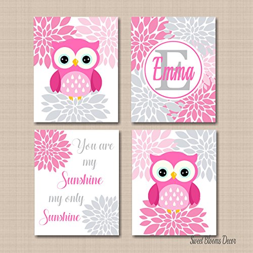 -. Title : Pink Gray Nursery Wall Art Owls Girl Room Decor,Pink Gray Owl Baby Girl Pink Gray Floral Nursery Wall Art Owl Baby Gift You Are My Sunshine-UNFRAMED 4P.R.INTS (NOT CANVAS)C508