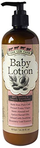 ReleaseDate : 2015-05-28 Studio : Four Cow Farm Publisher : Four Cow Farm Binding : Baby Product Product Description An exquisitely smooth and soothing lotion made from Pure Cold Pressed Extra Virgin Sweet Almond and Apricot Kernel Oils, infused with Soothing Rosemary Leaf Extract. Our original blend combines Apricot Kernel Oil, which is excellent for babies because of its fine, gentle nature and its high Vitamin E content and skin-softening properties, with the calming, anti-inflammatory effects of Sweet Almond Oil, and the additional soothing benefits of Rosemary Leaf Extract. This authentic and gentle all-over face and body moisturising lotion absorbs quickly and leaves no sticky residue. Perfect for everyday use on delicate baby skin or normal or sensitive adult or kiddie skins. Purpose: For regular, all-over face and body use to seal in moisture and protect from dry or chapped skin. Excellent for soothing skin prone to redness and irritation. Directions: Apply gently to skin after baths, when skin feels dry or chapped, or as often as needed. Ingredients: Purified water, prunus amygdalus dulcis (sweet almond) oil, glycerin, prunus ameniaca (apricot) kernel oil, cetearyl olivate, sorbitan olivate (olive derived emulsifying wax), cetearyl alcohol (veg. fatty alcohol), parfum (plant-derived natural preservative not to be confused with perfume), rosemarinus officinalis (rosemary) leaf extract, potassium sorbate (natural preservative). 0