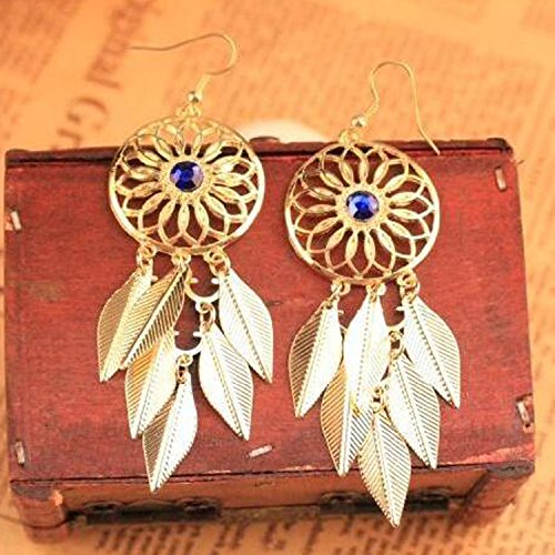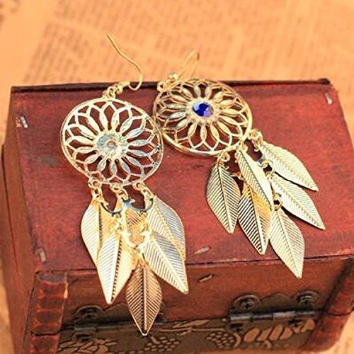 A&C Bohemia Titan Earrings for Women, Fashion Fringed Leaf Dangle for Women. (Gold)