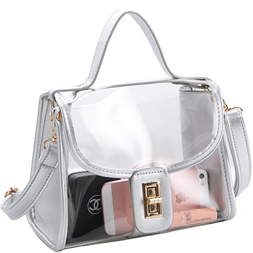 Product Description Finally a clear bag that is small and stylish. Most clear bags in the market is big and bulky totes, but with kilofly Transparent 2-in-1 Clutch Shoulder Bag, you can now flaunt your cute stylish clear bag at work, concerts, and all the places where only clear-bags are allowed. Moreover, no more worries on food stains or makeup grains, this lovely bag is easy to clean inside and out and protects your valuables by keeping them dry. Its waterproof design is also perfect for a trip to the beach and on rainy days.
