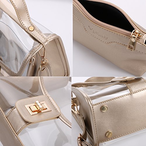 Straps are adjustable and detachable - This way you may be able to wear it as a shoulder bag, crossbody bag or a handbag. This bag can also be split into two separate bags - One transparent and the other made of PU leather. Definitely the bag for you!