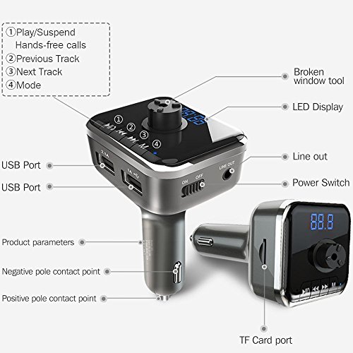 ✅ CAR BATTERY VOLTAGE DISPLAY: Bluetooth transmitter with LED screen can display the voltage of the car battery | FM frequency | Track number. Safety Tips: Please replace the car battery to avoid emergency when the voltage is lower than 11.5V, let your driving experience is better and safe